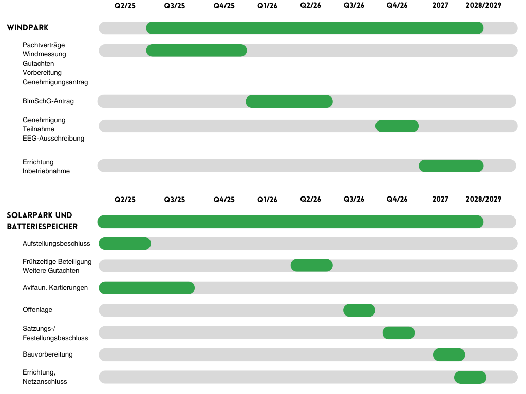 Die Planung des Energieparks Alleenfeld ist ein mehrstufiger Prozess, der in mehreren Phasen verläuft.
